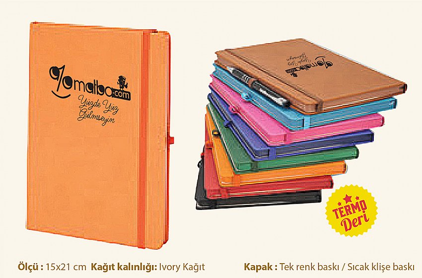 15 x 21 Baskısız Termo deri defter kenar boyalı |